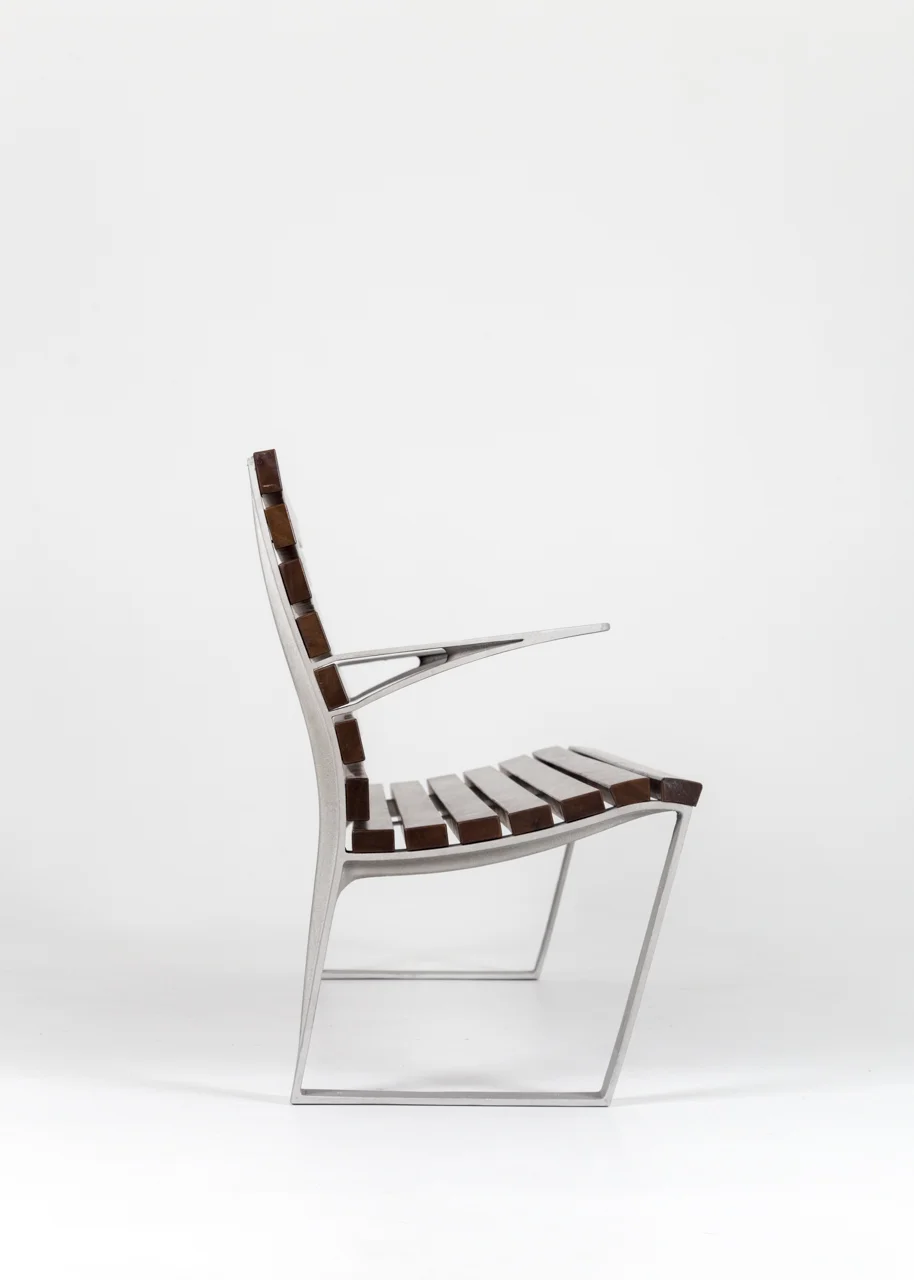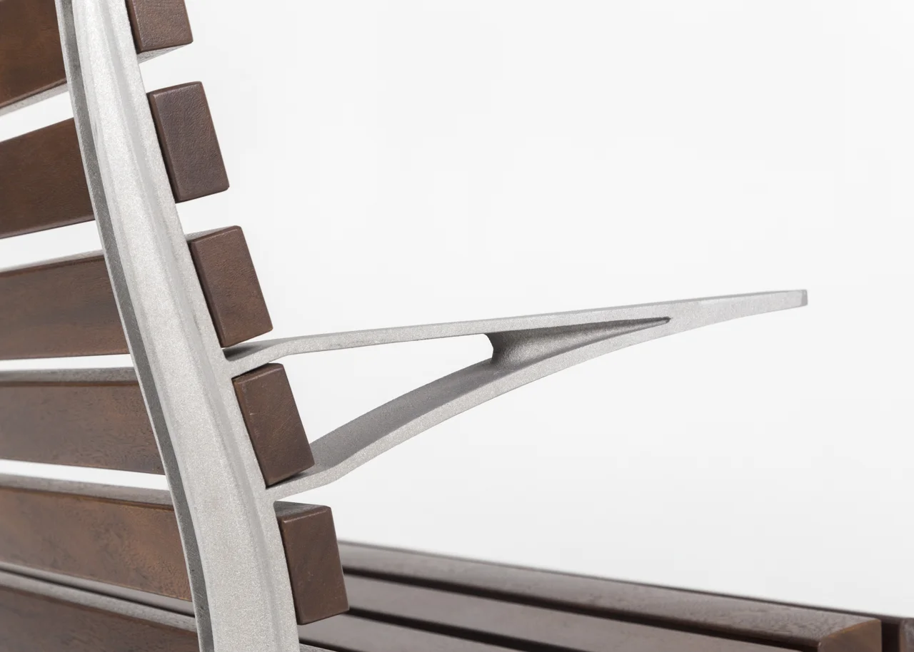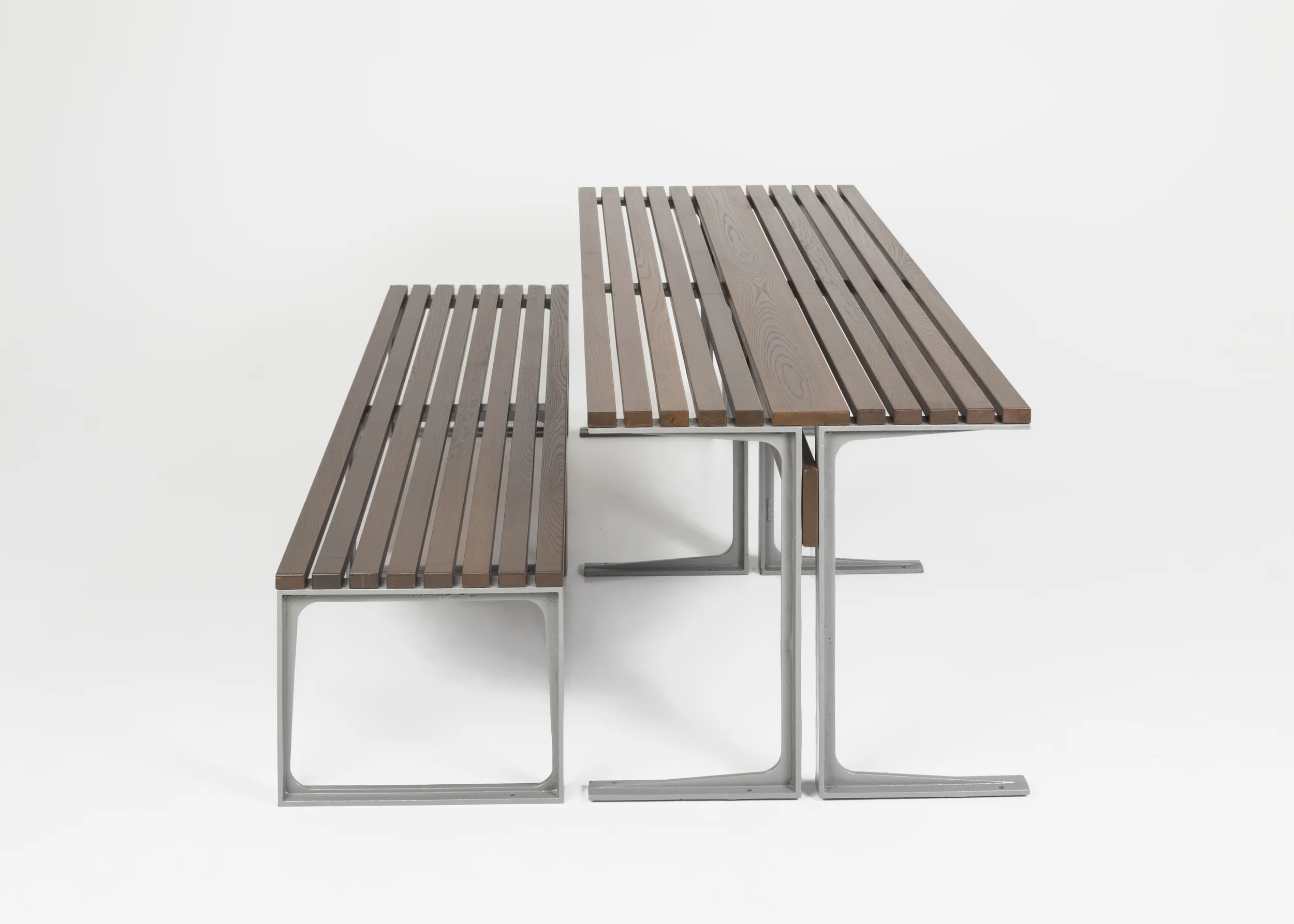 Depuis 2008, sans abandonner l’aluminium, nous avons incorporé la fonte ductile, car celle-ci est bien plus résistante en cas de choc, notamment des véhicules. La ligne Léman a été complétée depuis par une banquette (banc sans dossier ni accoudoirs) et par une table. Si dans les premières années nous avons travaillé avec du bois exotique – de l’ipé notamment – avec le label du Forest Stewardship Council (FSC), alors soutenu dans le monde entier par des associations comme le WWF et Greenpeace, nous travaillons actuellement surtout avec des bois européens, en particulier avec du frêne thermo-traité.